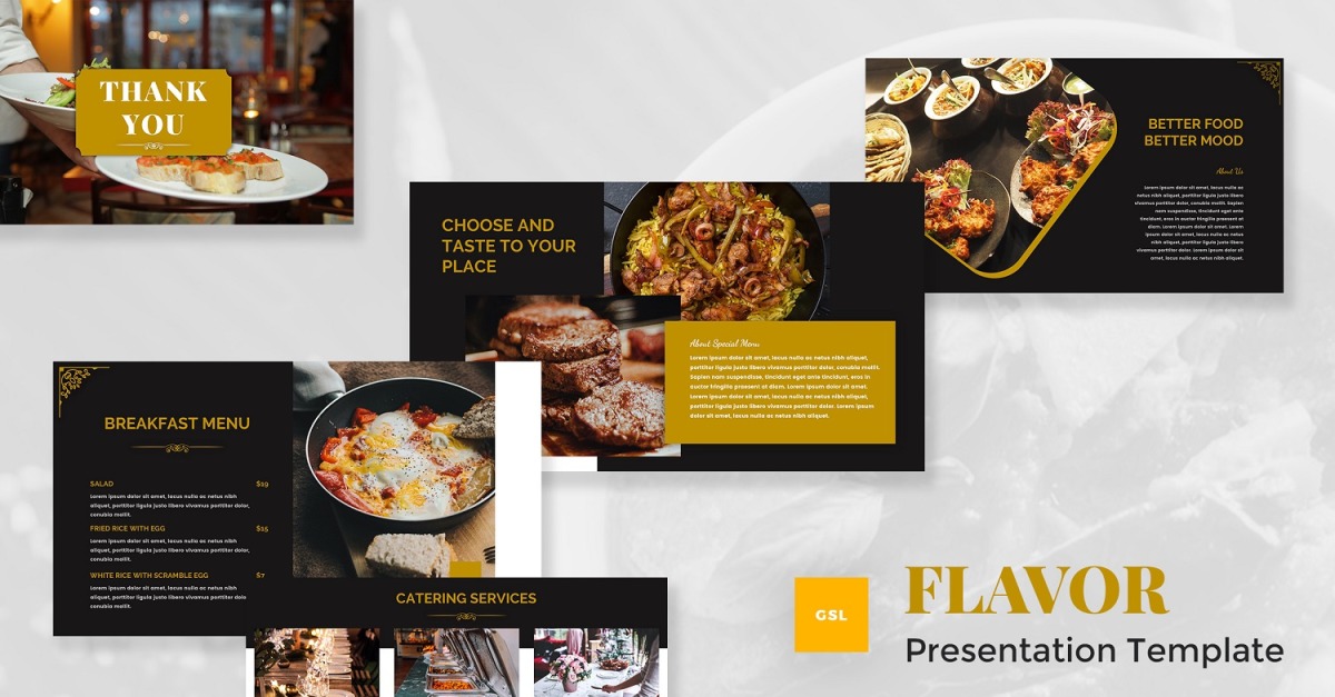 Flavor - Шаблон Google Slides для кейтеринга и еды