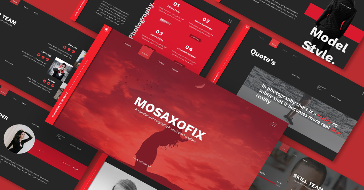 Mosaxofix — Шаблон слайдов Google для фотографий — это шаблон презентации фотоагентства с плоским дизайном, чистой, минималистской, современной презентацией, подходящей для творческой индустрии, такой как мода, веб-агентство, фотоиндустрия, модель и другие отрасли.
