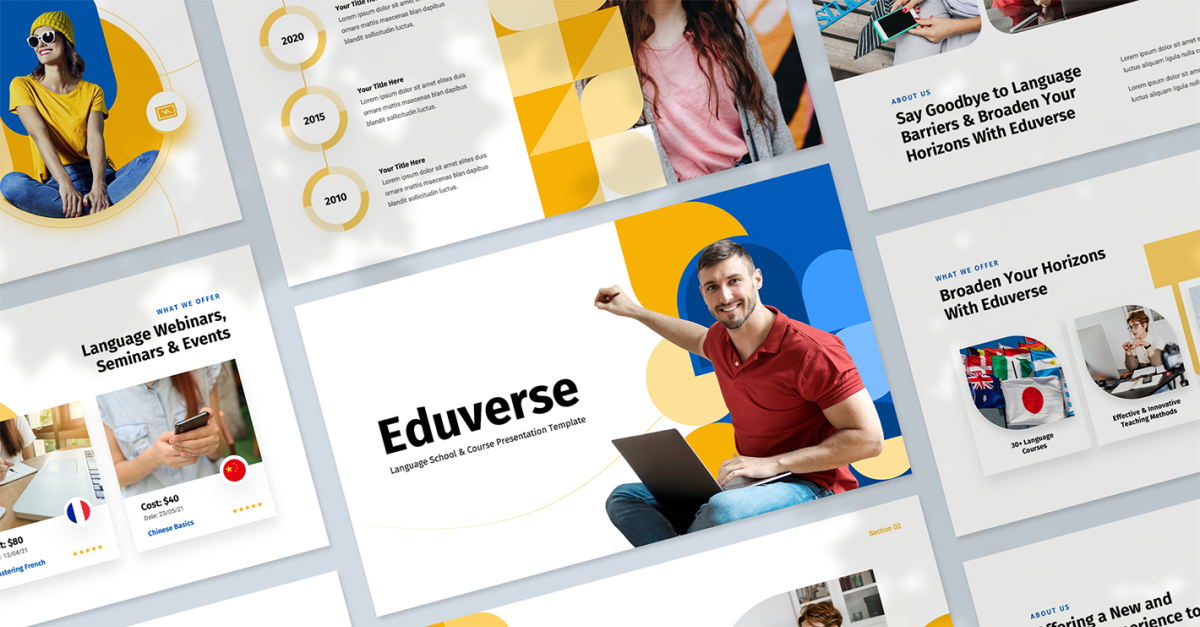 Шаблон презентации Eduverse идеально подходит для компаний и частных лиц, предлагающих языковые курсы студентам или владельцам бизнеса. Они могут предложить начинающему или продвинутому языковому обучению на различных языках. Делаете ли вы предложение важному новому клиенту или бизнес-портфолио, этот шаблон Google Slides позволит вам быстро и эффективно превратить вашу информацию и данные в презентацию.
