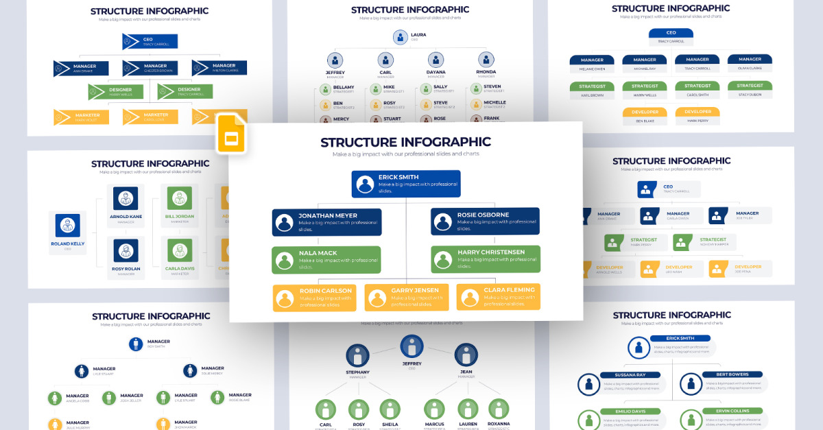 Инфографика структуры команды. Шаблон Google Slides. Плоский, чистый, минималистичный, элегантный и гибкий шаблон презентации.