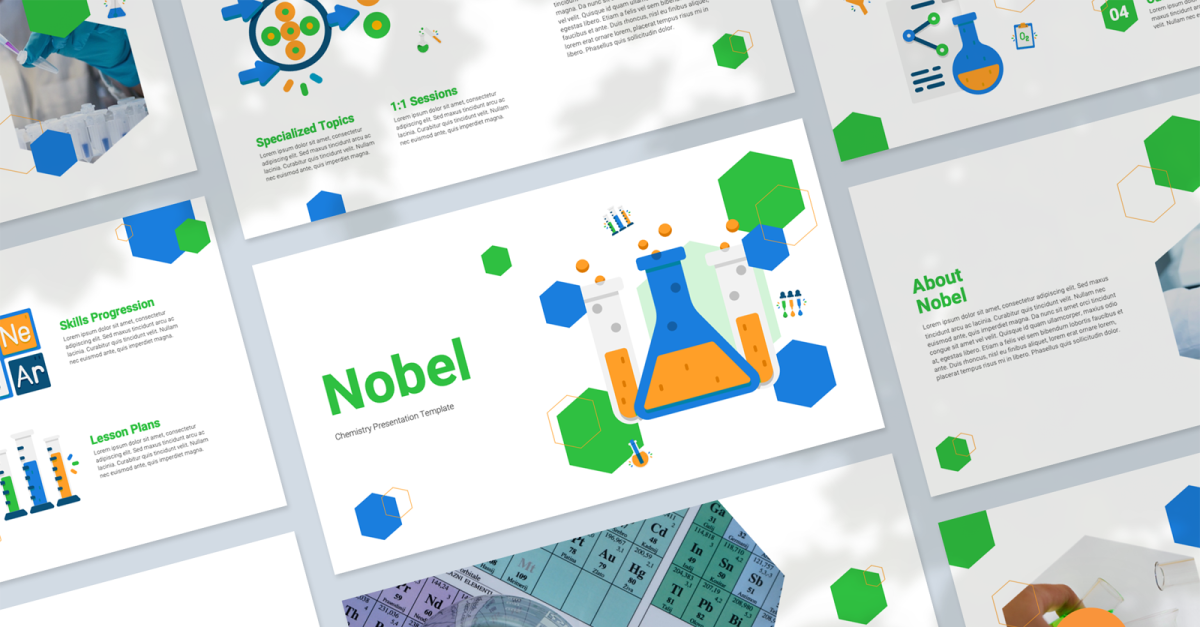 При создании шаблона Нобелевской презентации мы в первую очередь уделяли внимание учителям, школам и учащимся. Делаете ли вы предложение важному новому клиенту или бизнес-портфолио, этот шаблон Google Slides позволит вам быстро и эффективно превратить вашу информацию и данные в презентацию.