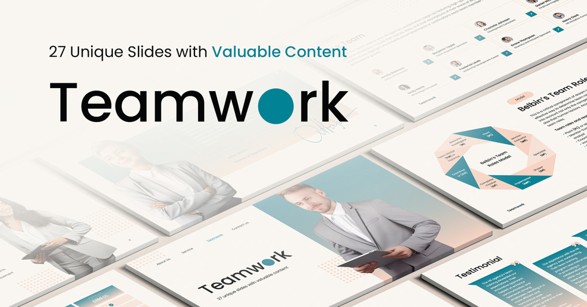 27 уникальных слайдов с ценным содержанием: Определение командной работы, Основы эффективной командной работы, Стратегический подход к развитию командной работы, Плюсы и минусы внедрения методологий командной работы, Модель командных ролей Белбина, Модель командного развития GRPI, Контрольный список GRPI Определение ролей и построение Команда, модель «Основы командной работы» Катценбаха и Смита, четырехмерная модель реляционной работы, процесс мозгового штурма, рефлексивный цикл Гиббса, шаблон отзывов, шаблон нашей команды, шаблон таблиц цен, организационная схема, шаблон галереи, контактная информация.