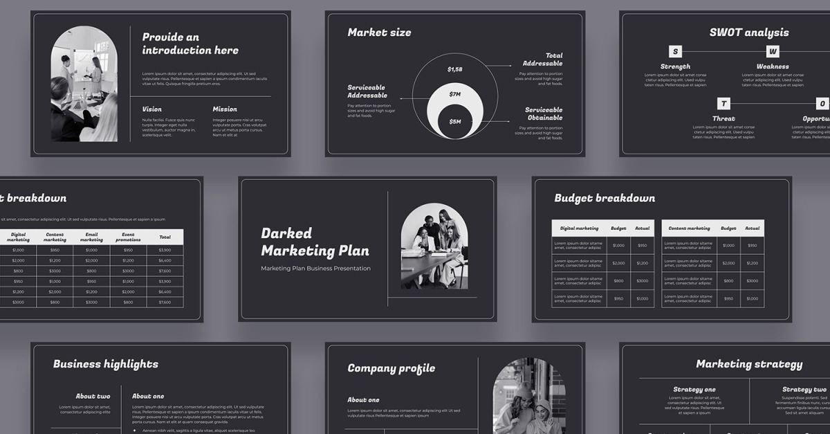 Представляем Google Слайды маркетингового плана Darked