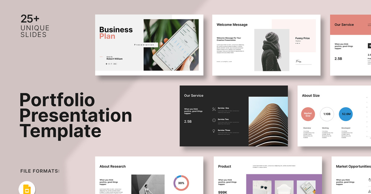 **Минимальный дизайн/Шаблон слайд-презентации Google бизнес-плана** Вам нужно создать документ с шаблоном слайд-презентации Google бизнес-плана для вашего клиента?