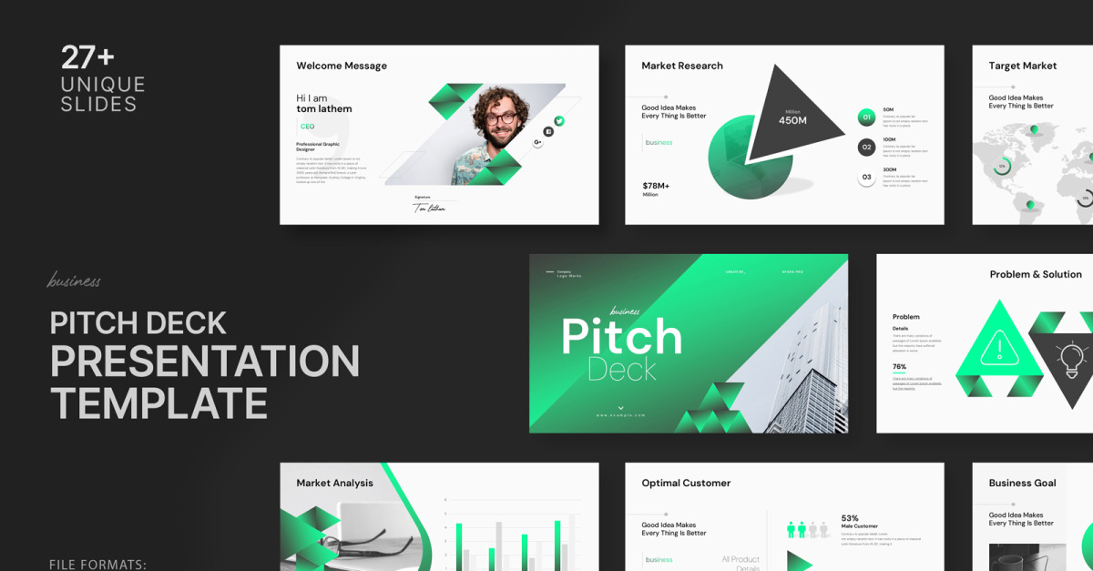 Шаблон слайдов Google Business Pitch Deck позволяет вам просто добавить свой логотип и изображения, отредактировать цвета и типографику вашего бренда, и все готово. Пожалуйста, не тратьте свое время, мы сделали всю тяжелую работу за вас.