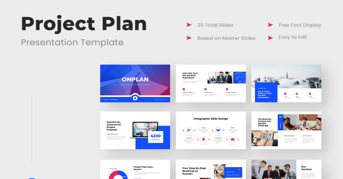 Каждый успешный проект начинается со структурированного плана, которому может следовать вся команда. Шаблон «План проекта» для Google Slides Onplan создан для того, чтобы обеспечить ясность, гибкость и профессиональный дизайн для демонстрации ваших идей. Представляете ли вы дорожную карту, бизнес-стратегию или основные этапы проекта, этот редактируемый шаблон плана проекта для Google Slides поможет вам поддерживать всё в едином порядке.