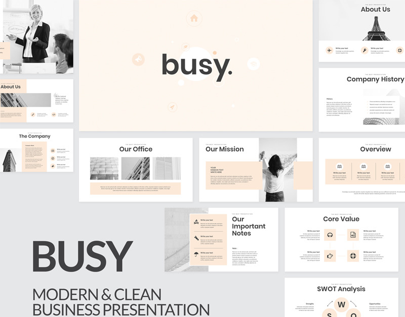 Занятые современные слайды Google для чистого бизнеса