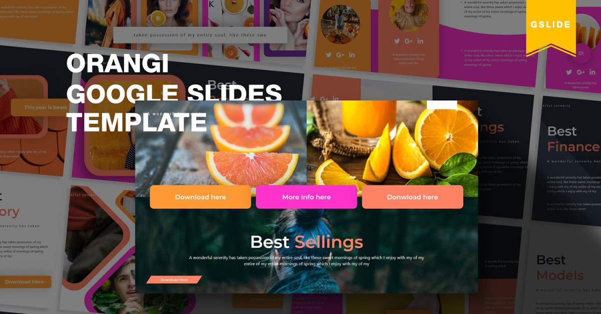 Это **Оранжи | Шаблон Google Slides** – получите его прямо сейчас! Отличный шаблон Google Slides для всех деловых и личных нужд.