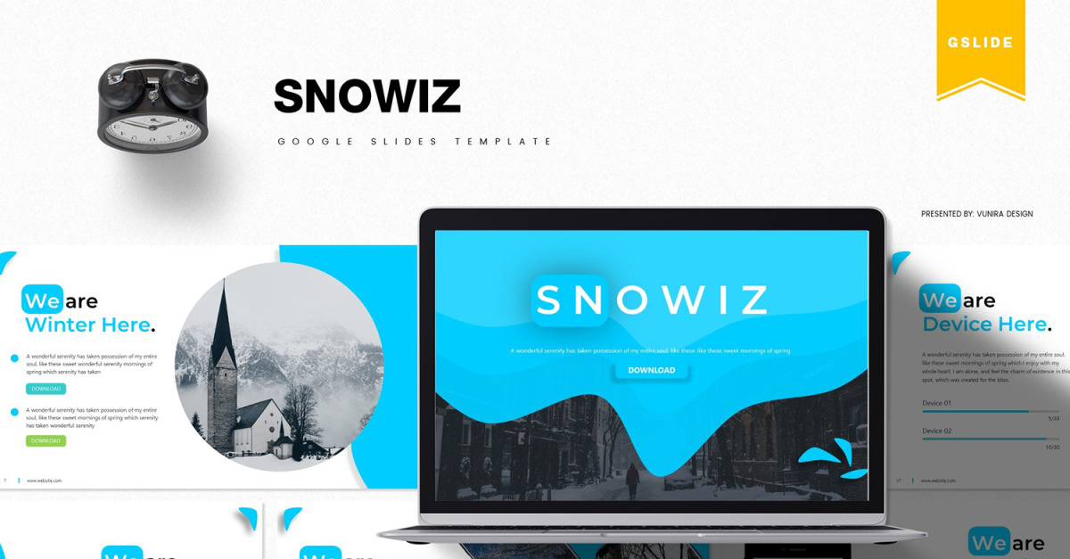 Это **Сноуиз | Шаблон Google Slides** – получите его прямо сейчас! Отличный шаблон Google Slides для всех деловых и личных нужд.