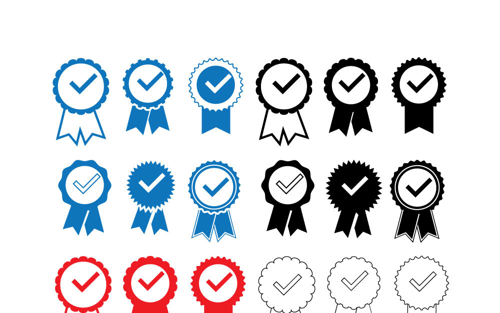 Коллекция профессиональных значков подтверждения соответствия сине-красно-белого цвета