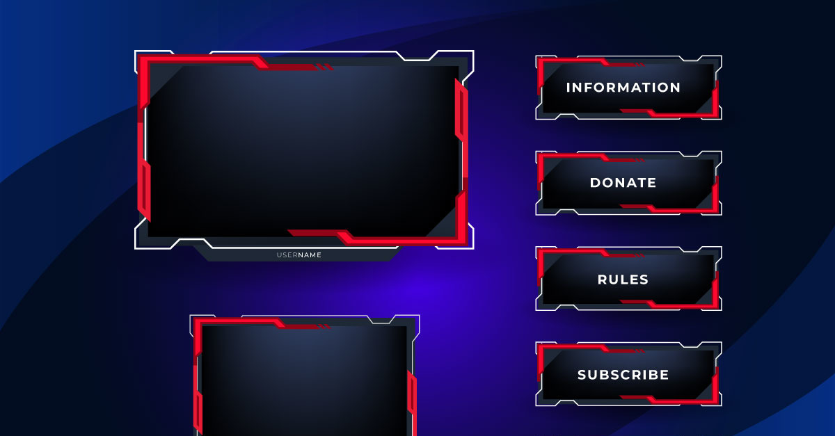шаблон игровой панели прямой трансляции с игровым экраном, чатом в реальном времени и рамками веб-камеры 4 $ Download
