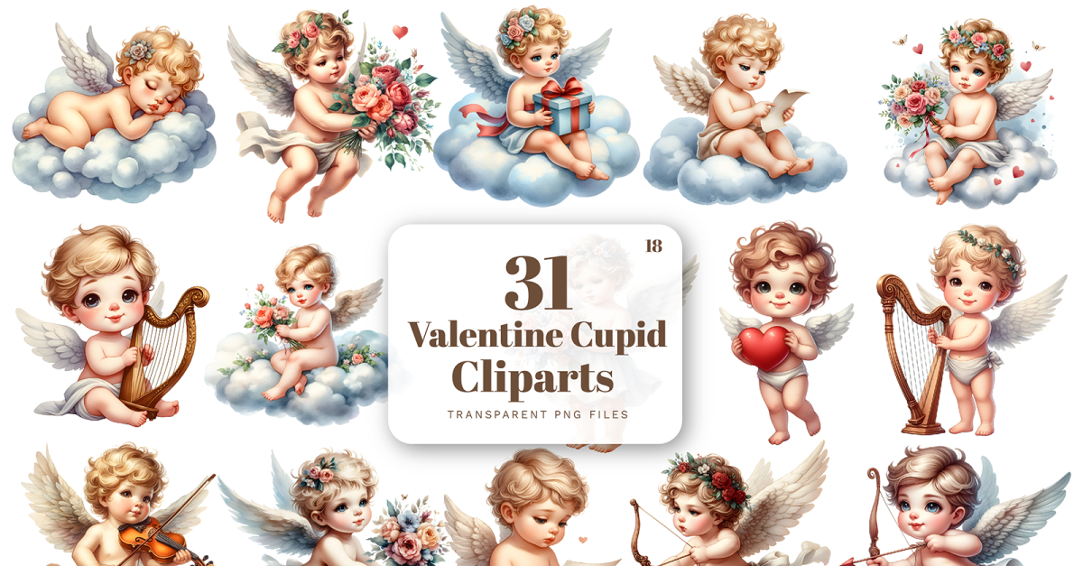 Акварельный клипарт ко Дню святого Валентина, Валентинки, сладости, воздушные шары, любовные письма, сердечки 9 $ Download