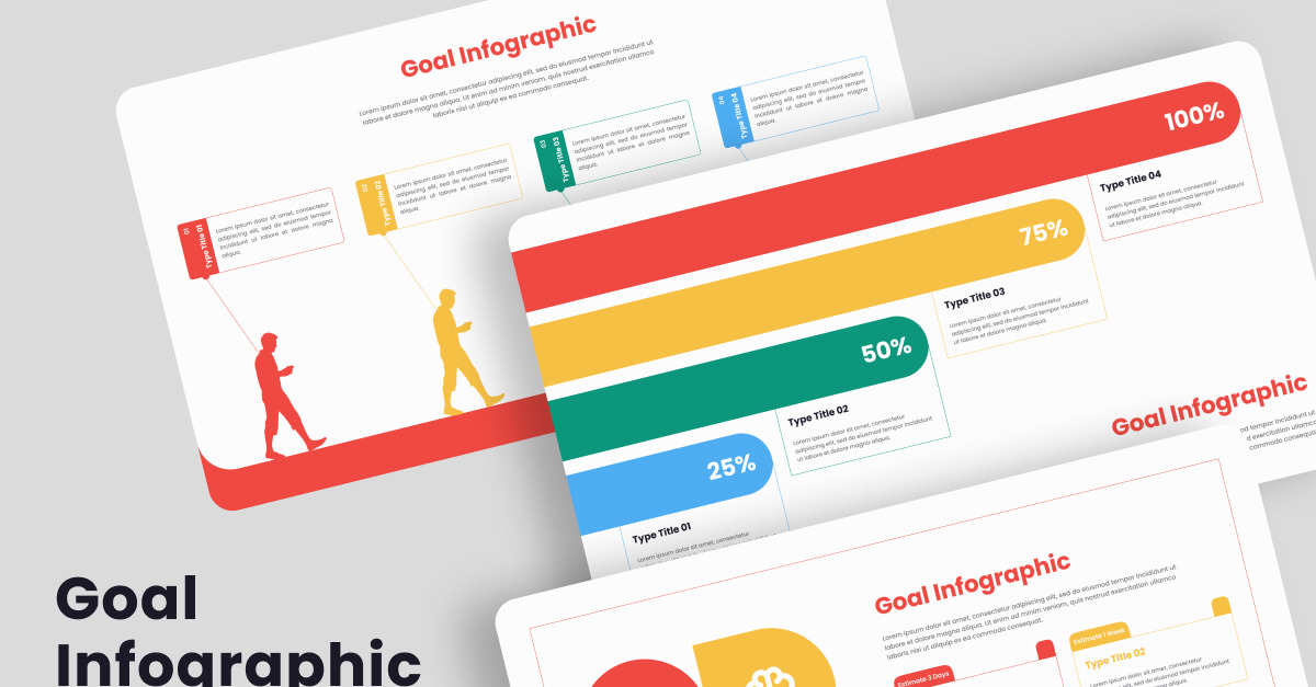 Демонстрируйте свои амбиции с помощью шаблона Goal Infographic Template V3. Этот шаблон предлагает визуально привлекательный способ представления рамок постановки целей, планов действий и обновлений о ходе работ. Идеально подходит для мотивационных презентаций, сессий стратегического планирования и семинаров по личностному развитию.