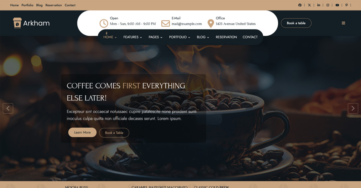 Arkham – лучший шаблон Joomla для кофейни и кофейного магазина