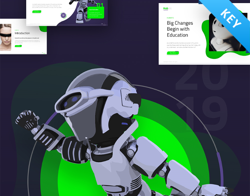Полностью анимированный шаблон презентации Hubotc Technology Keynote Hubotc Technology — это роботизированный шаблон презентации. Благодаря футуристической концепции и множеству макетов устройств он поможет вам в освоении искусственного интеллекта, машинного обучения, программного обеспечения, технологий или других научных тем.