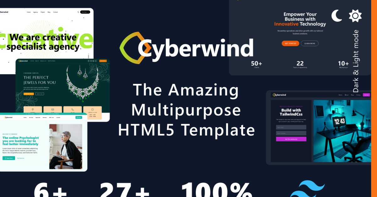 Cyberwind — это универсальный HTML-шаблон , разработанный с использованием Tailwind CSS и предоставляющий всё необходимое для создания профессиональных веб-сайтов и лендингов за считанные минуты . Благодаря множеству готовых демонстрационных вариантов, охватывающих различные сферы деятельности, такие как бизнес, IT-решения, креативные агентства, психологию и профессионалов , Cyberwind — идеальный выбор для любого проекта.