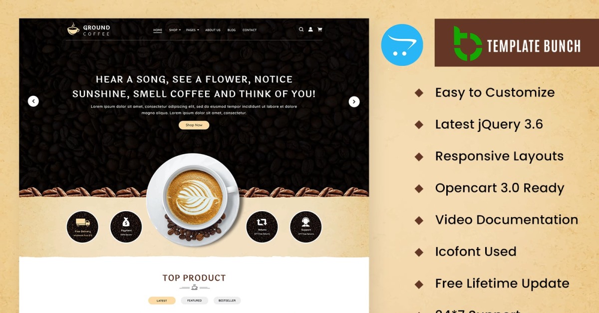 Молотый кофе - Адаптивная тема OpenCart для электронной коммерции - Описание
