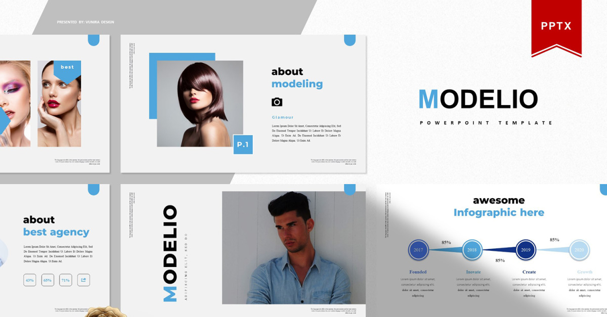 Это **Моделио | Шаблон Powerpoint** — получите прямо сейчас! Отличный шаблон презентации для всех деловых и личных нужд.