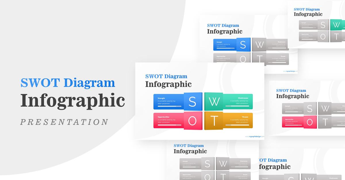 Четыре текстовых поля для шаблона инфографической презентации диаграммы SWOT-анализа специально для тех, кто хочет представить