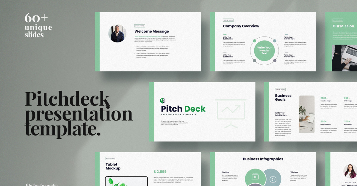 Для тех, кто ищет профессиональную презентацию,**Pitch Deck**шаблон презентации PowerPoint предлагает красивый минималистичный дизайн и множество функций. Создан с учетом творческих отраслей, но может быть полностью адаптирован для любого бизнеса или отрасли.