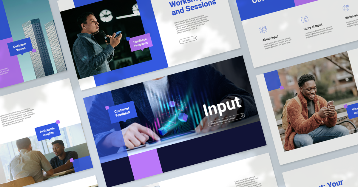 При создании шаблона презентации входных данных мы в первую очередь ориентировались на тех, кто ищет обратную связь, руководителей команд, менеджеров, координаторов проектов и тех, кто стремится к улучшению. Независимо от того, делаете ли вы предложение важному новому клиенту или формируете портфолио, этот шаблон PowerPoint позволит вам быстро и эффективно преобразовать информацию и данные в презентацию.