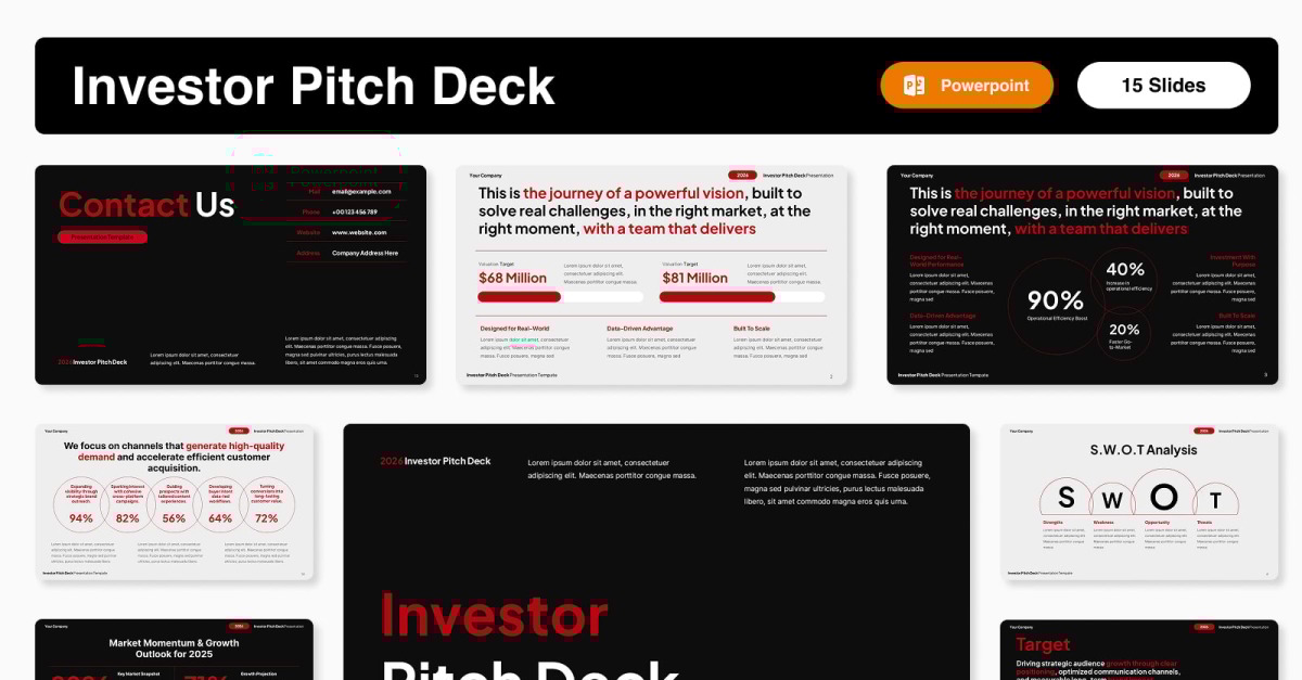 Все слайды полностью редактируемы — вы можете настроить цвета, шрифты, диаграммы, значки и изображения в соответствии с фирменным стилем вашего бренда. Идеально подходит для презентаций по привлечению инвестиций, встреч с венчурными инвесторами, демонстрационных дней, программ акселерации и презентаций для инвесторов в стартапы.