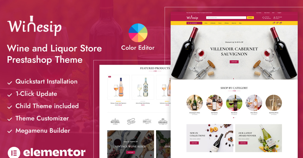 Winesip — это изысканная и стильная адаптивная тема PrestaShop, разработанная для винных магазинов, винных магазинов, пивоварен, виноделен, баров и бутиков изысканных напитков . Она отличается элегантным и продуманным визуальным стилем, подчёркивающим богатый характер и эксклюзивность вин, крепких спиртных напитков и коллекций элитных напитков. Благодаря продуманной планировке, мягким цветовым тонам и привлекательной выкладке товаров Winesip помогает создать изысканную торговую атмосферу, отражающую качество и мастерство.