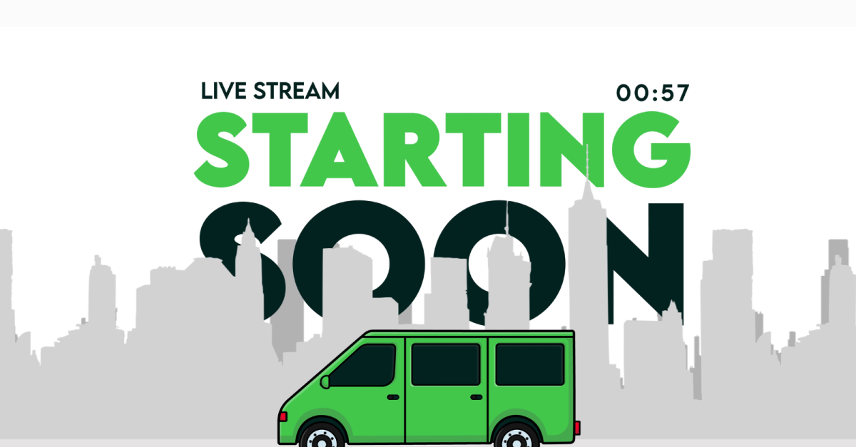 Скоро начнется трансляция. Обратный отсчет 1 минута — анимация автомобилей и городов