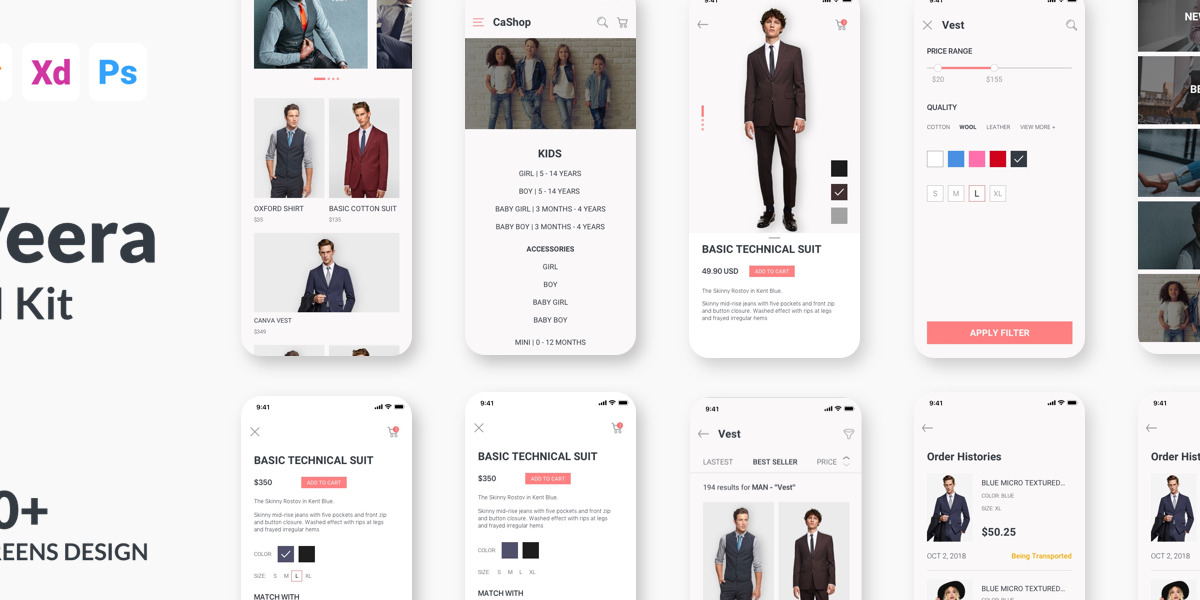 Комплект пользовательского интерфейса мобильного приложения Veera E Commerce