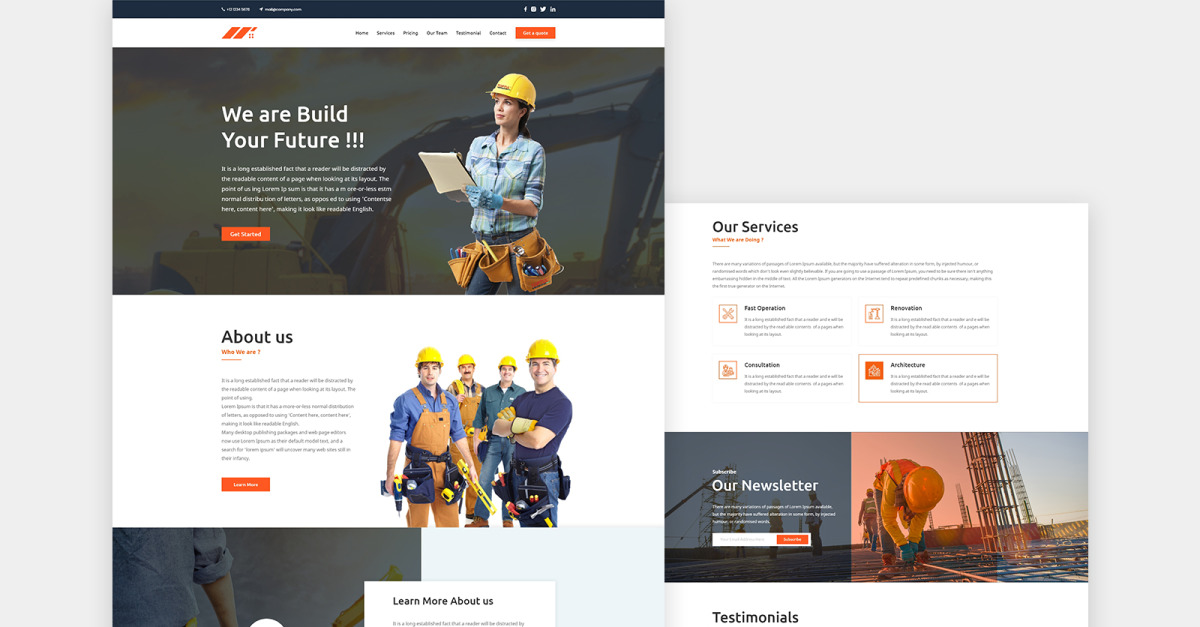 Constex - одностраничные элементы пользовательского интерфейса для строительных услуг