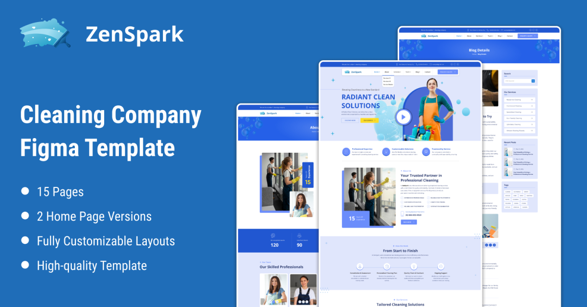 ZenSpark – Шаблон Figma для клининговой компании