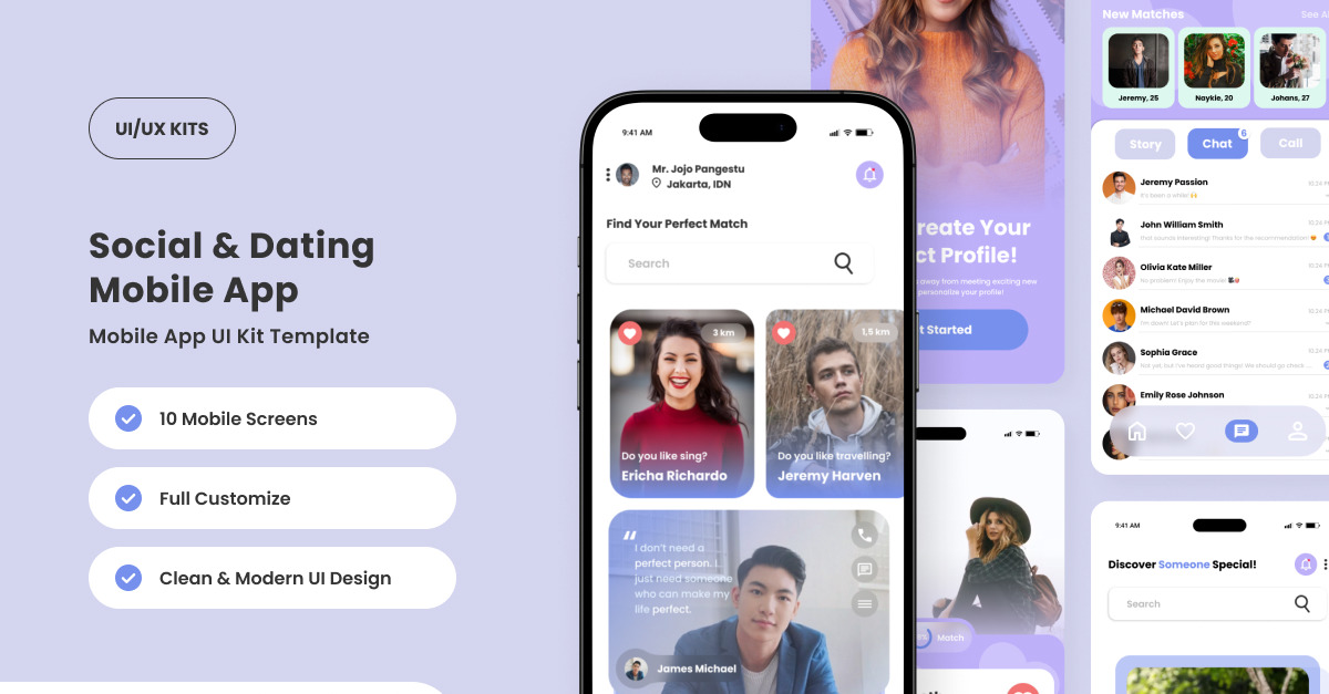 Clip — интуитивно понятный набор пользовательского интерфейса для приложений социальных знакомств 16 $ Download