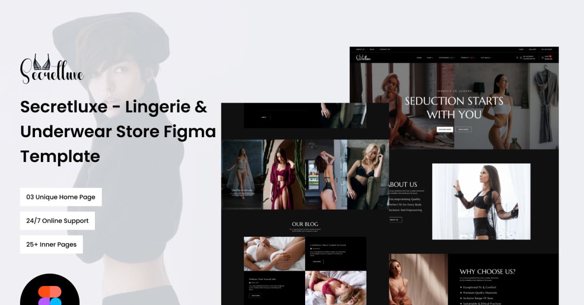 Secret Luxe — современное нижнее белье и многоцелевой шаблон электронной коммерции Figma