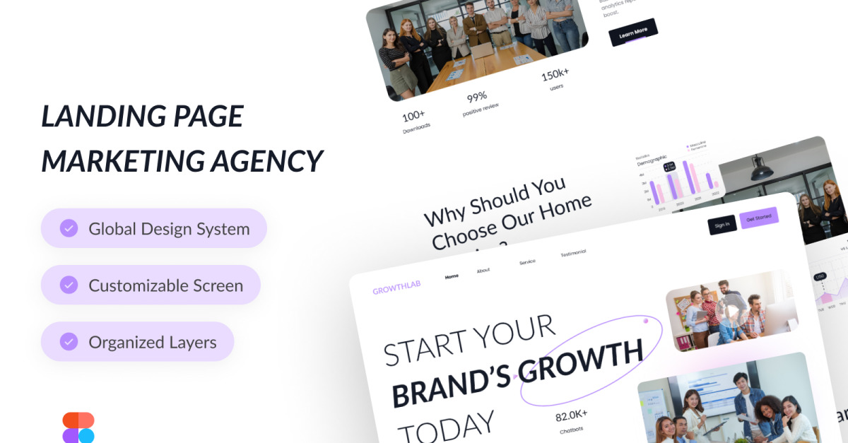 GrowthLab – Шаблон целевой страницы Figma для креативного маркетингового агентства - Features Image 1