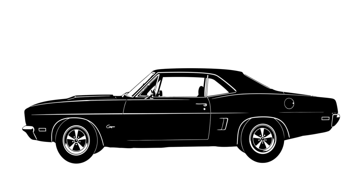 Иллюстрация винтажного роскошного купе в классическом черно-белом стиле, изолированная на белом фоне. 9 $ Download