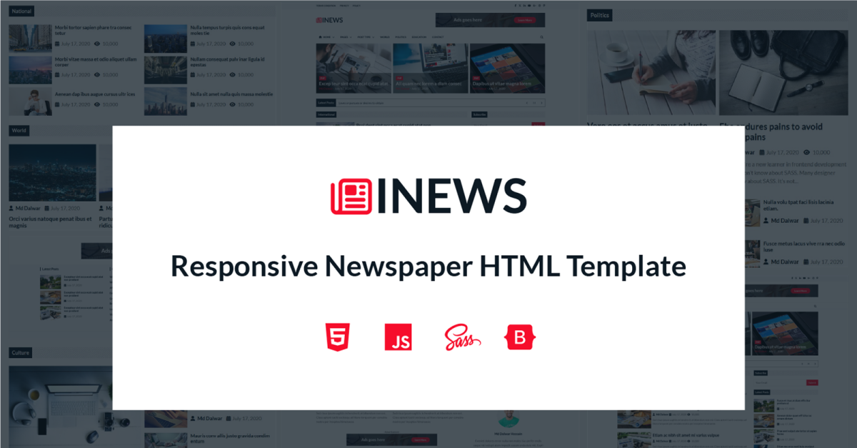 iNews — отличный шаблон веб-сайта для газет, журналов, блогов и других. В этот шаблон включено несколько предопределенных стилей домашней страницы и несколько стилей сообщений. iNews — это сверхбыстрый HTML-шаблон. Используйте iNews для многих ниш, таких как политика, мода, игры, видео, музыка, бизнес и мировые новости. Этот шаблон HTML5 основан на новейшей платформе Bootstrap 4 и полностью адаптивный. Организованные файлы помогут вам настроить внешний вид вашего сайта. iNews HTML создан с использованием чистого кода. Попробуйте iNews HTML сегодня и создайте свой идеальный журнал.