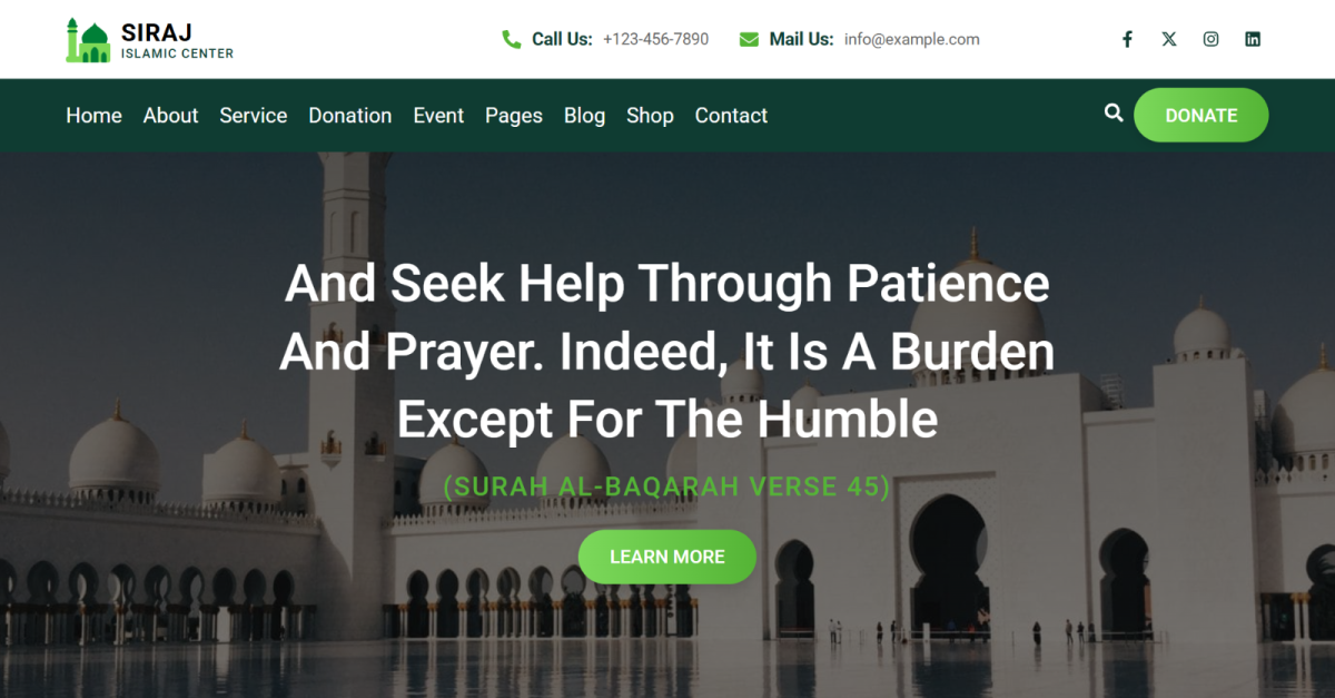 Siraj — это современный, специализированный шаблон сайта на React , разработанный для исламских центров, мечетей и религиозных организаций, стремящихся вдохновлять и объединять свои сообщества онлайн. Siraj, созданный на основе скорости и гибкости React.js и структурированный с использованием чистого модульного JavaScript и элегантного оформления CSS3, обеспечивает плавный и адаптивный интерфейс на любом устройстве. Этот шаблон идеально подходит для демонстрации расписания молитв, продвижения образовательных программ, анонсов мероприятий или распространения исламских знаний. Он сочетает вдохновляющие визуальные эффекты с интуитивно понятным макетом, чтобы наглядно донести вашу миссию. Каждый раздел тщательно оптимизирован для повышения вовлеченности, позволяя вам рассказывать о своих услугах, делиться историями сообщества и упрощать процессы регистрации на мероприятия или пожертвования.