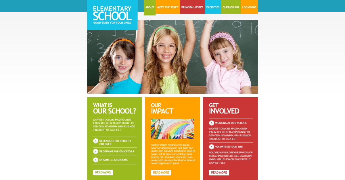 Этот шаблон дизайна веб-сайта с принадлежностями для начальной школы является адаптивным
