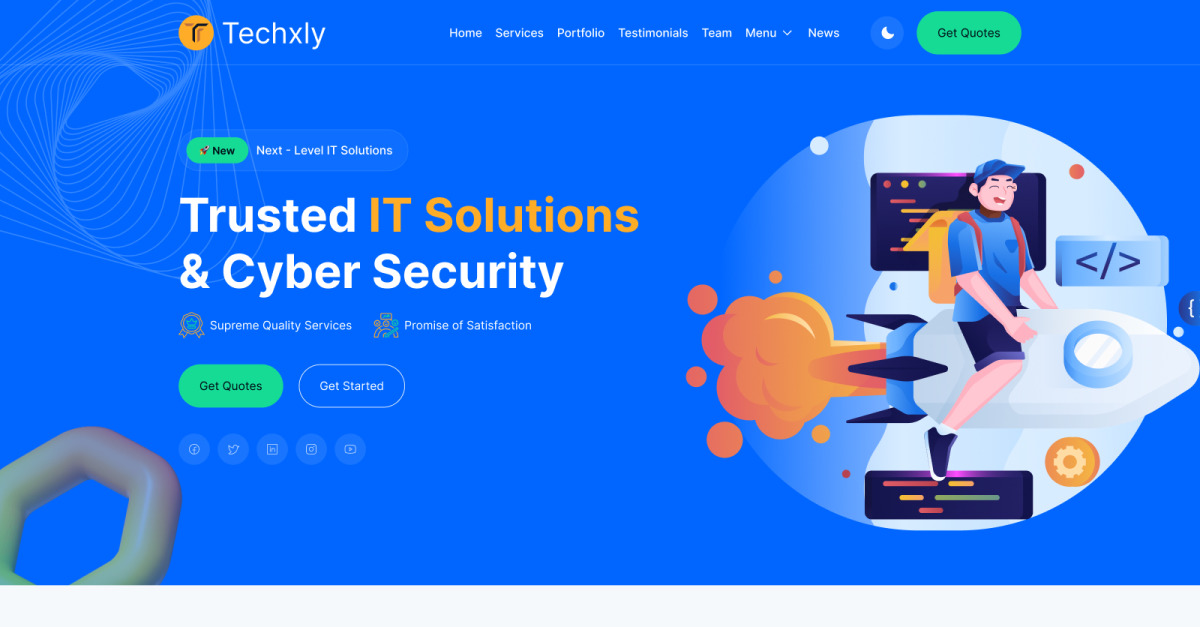 Представляем Techxly | IT Solutions & Business Services Multipurpose Responsive Website Template , передовой и универсальный шаблон, разработанный для удовлетворения потребностей ИТ-компаний, бизнес-услуг и технологических организаций. Созданный с использованием современных технологий, таких как Bootstrap 5.3.3, Swiper, AOS, Glightbox, Vanilla Tilt и SCSS, Techxly гарантирует, что ваш сайт останется динамичным, интерактивным и удобным для пользователя, предлагая бесперебойный опыт на всех устройствах.