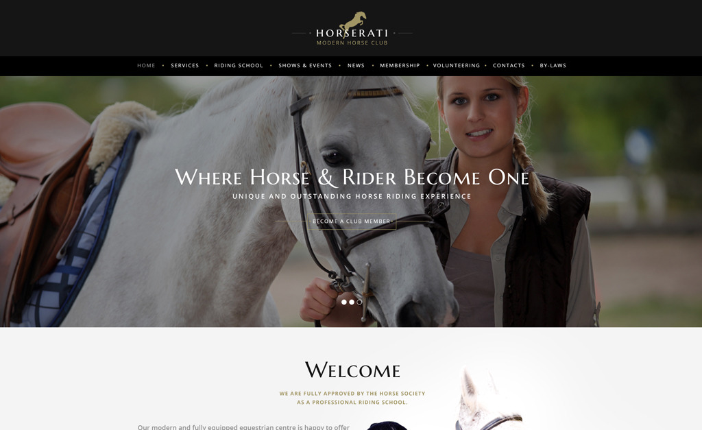Этот шаблон дизайна веб-сайта, посвященного конному спорту, является адаптивным
