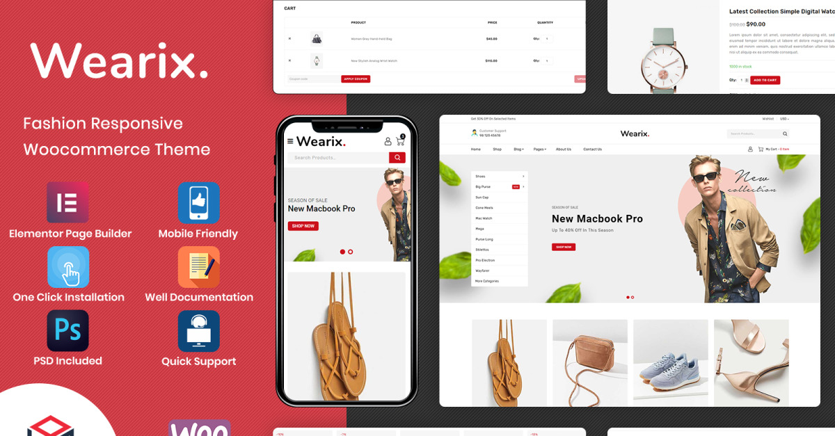 Wearix — это полностью уникальная концепция, специально созданная для сайтов о моде и аксессуарах. Wearix наиболее подходит для магазинов одежды, модной одежды, мужской одежды, сезонной одежды, ювелирного магазина, детской моды, женской моды, магазина обуви, сандалий и т. д. Адаптивная тема Wearix fashion для WooCommerce WordPress поставляется с конструктором страниц Elementor, конструктор страниц Elementor очень полезен в WordPress. , используя конструктор страниц Elementor, вы можете перетаскивать все. для управления или изменения вашего веб-сайта не требуются знания кодирования или какой-либо разработчик, вы можете управлять всем из панели администратора. В этой теме есть некоторые расширенные функции, такие как уникальный стиль верхнего и нижнего колонтитула, используемая контактная форма 7, мегаменю Ap, поддержка нескольких языков, импорт демонстрационных данных одним щелчком мыши, полностью адаптивный дизайн, поддержка мобильных устройств, функциональность ajax, хороший дизайн других страниц, мета-слайдер. , потрясающий дизайн категорий, вкладки с рекомендуемыми, самыми продаваемыми и новыми продуктами, продукты с ежедневными предложениями, несколько вариантов баннеров и слайдеров, дизайн новейших продуктов, отзывы, блог о камне, подписка на информационный бюллетень, дизайн производителя, страница продукта с облачным масштабированием, полезные ссылки в нижний колонтитул, страница контактной информации