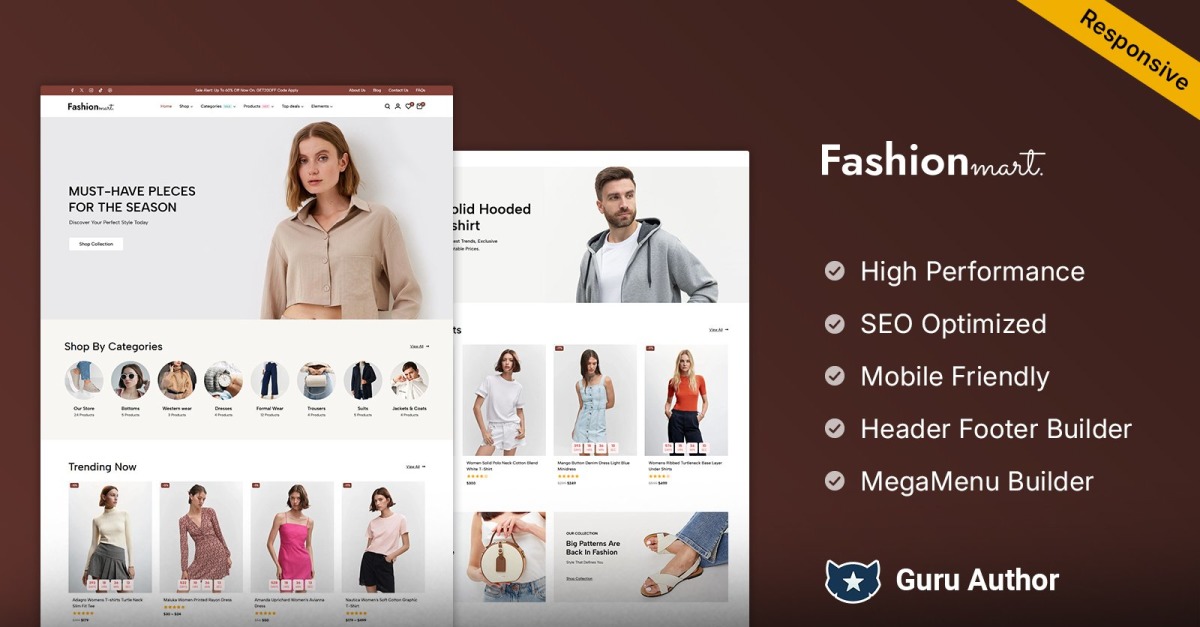 Fashionmart, разработанный с учетом производительности, полностью адаптивен и молниеносно быстр. Каждый элемент оптимизирован для мобильных покупок и SEO, помогая вашему магазину занять более высокое место и работать безупречно на всех устройствах.