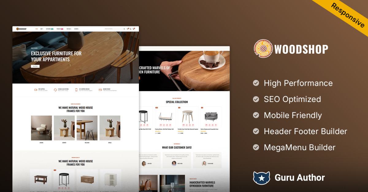 Хотите ли вы создать минималистичный интернет-магазин мебели, уютный магазин товаров для дома или стильную витрину изделий из дерева , Woodshop легко адаптируется под ваши нужды. Благодаря своим универсальным функциям он не просто тема, а комплексное решение для построения профессионального интернет-магазина, ориентированного на продажи.