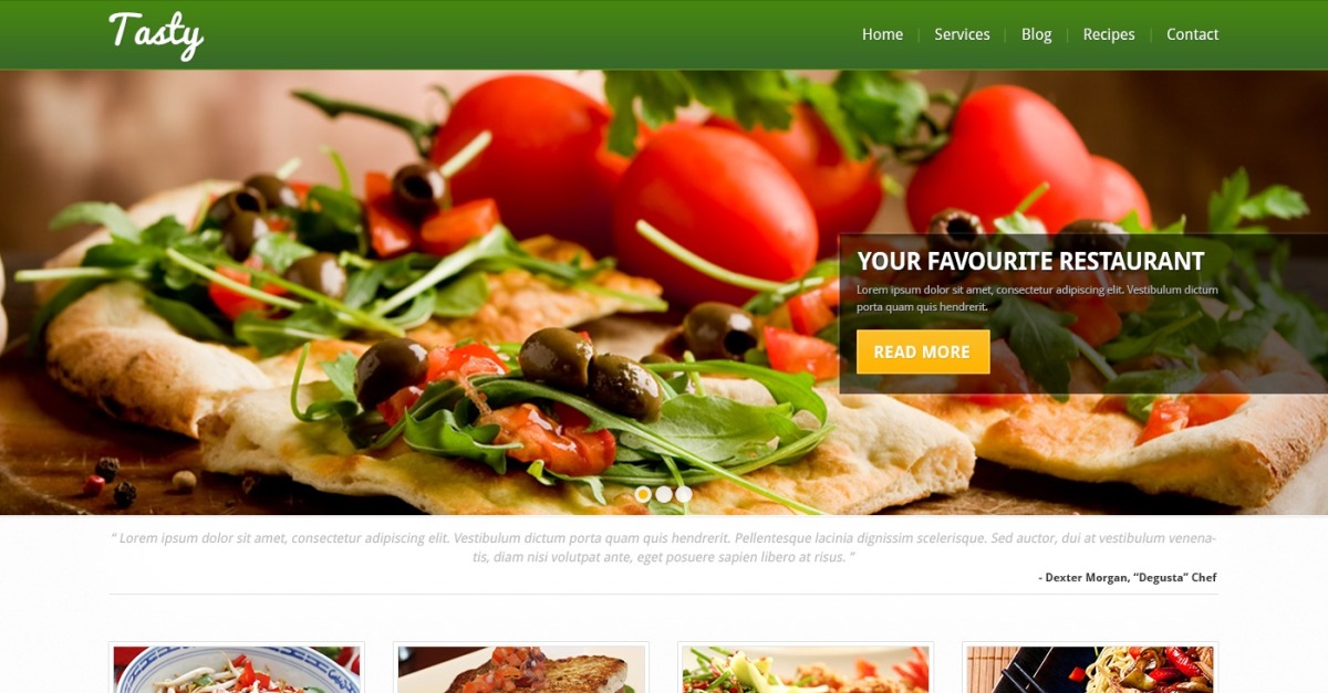 Зеленый цвет — для свежего и приятного для глаз тона, большие изображения — для визуальной привлекательности, пустое пространство — для лучшей демонстрации блоков контента на нем — вот как следующий дизайн представляет кулинарный сайт. Макет имеет аккуратную структуру для удобства восприятия информации, а акцент на фотографиях выступает привлекательным элементом данной темы. Глядя на такое яркое оформление, люди непременно почувствуют желание попробовать вкуснейшие блюда, попробовать их приготовить и еще раз зайти на сайт за такими замечательными рецептами.