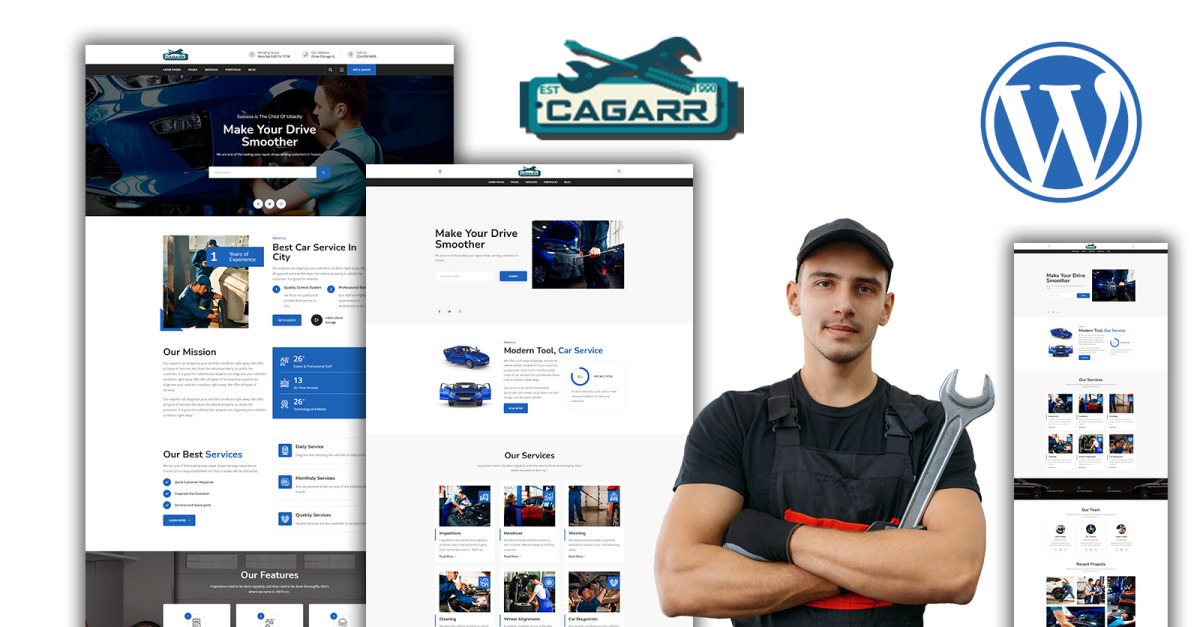 Плагины тем WordPress для ремонта автомобилей Cagaar Mechanics