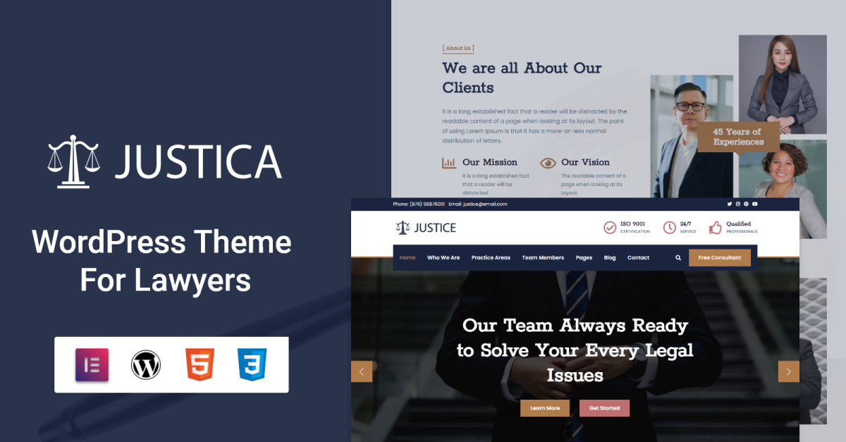 Привет! Opustech запускает настраиваемую, красиво оформленную и полностью адаптивную тему Justice . Мы тепло приветствуем всех вас в Opus Themes. Тема WordPress «Справедливость» , специально разработанная для всех типов юридических фирм, адвокатов, юрисконсультов, юрисконсультов и многих других. И эта тема лучше всего подходит для всех клиентов, поскольку вы можете очень легко изменить ее, используя готовые параметры. Для работы с нашей элегантной темой не требуется никаких знаний в области кодирования.