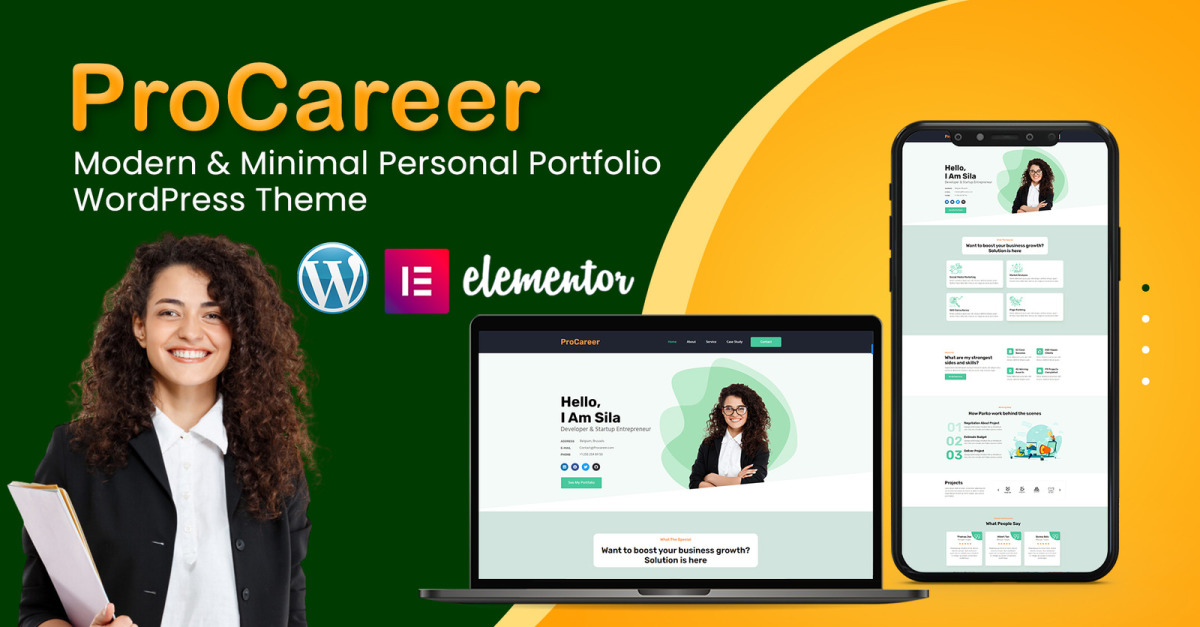 ProCareer Portfolio, потрясающая и профессиональная тема WordPress, тщательно созданная для людей, стремящихся продемонстрировать свои навыки, опыт и достижения в визуально увлекательной форме. ProCareer Portfolio, разработанный с использованием мощного конструктора страниц Elementor, предлагает непревзойденную гибкость, простоту использования и бесконечные возможности настройки, что делает его идеальным выбором для профессионалов в различных отраслях.