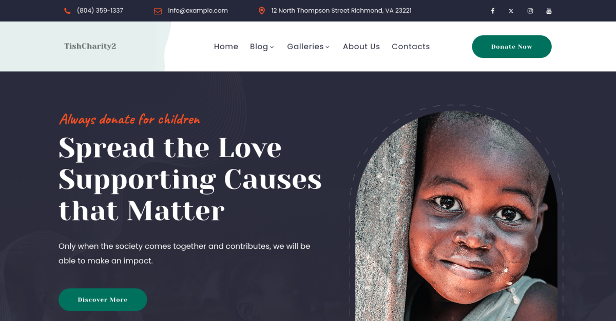 Добро пожаловать в «TishCharity2» — тему WordPress, разработанную с нуля для служения благородным миссиям НПО, благотворительных и некоммерческих организаций.