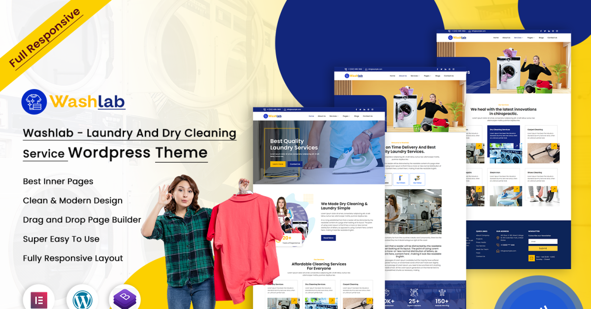 Откройте для себя конечный результат создания безупречных веб-сайтов для прачечных и химчисток с помощью Washlab, технической темы WordPress, предназначенной для расширения возможностей изобретателей и изобретателей веб-сайтов. Благодаря строго продуманному макету, интерактивным функциям и удобному интерфейсу Washlab упрощает процесс развития платформы для поставщиков услуг прачечной высшего уровня. безболезненно демонстрируйте жертвоприношения операторов, тарифные планы и резервирование выбора, сохраняя при этом ультрасовременную и профессиональную эстетику. Washlab, созданный для ускорения разработки, ускоряет процесс создания веб-сайта, позволяя изобретателям и изобретателям уделять внимание настройке. Улучшите свои интернет-структуры с помощью Washlab и пересмотрите опыт онлайн-стирки и химчистки.