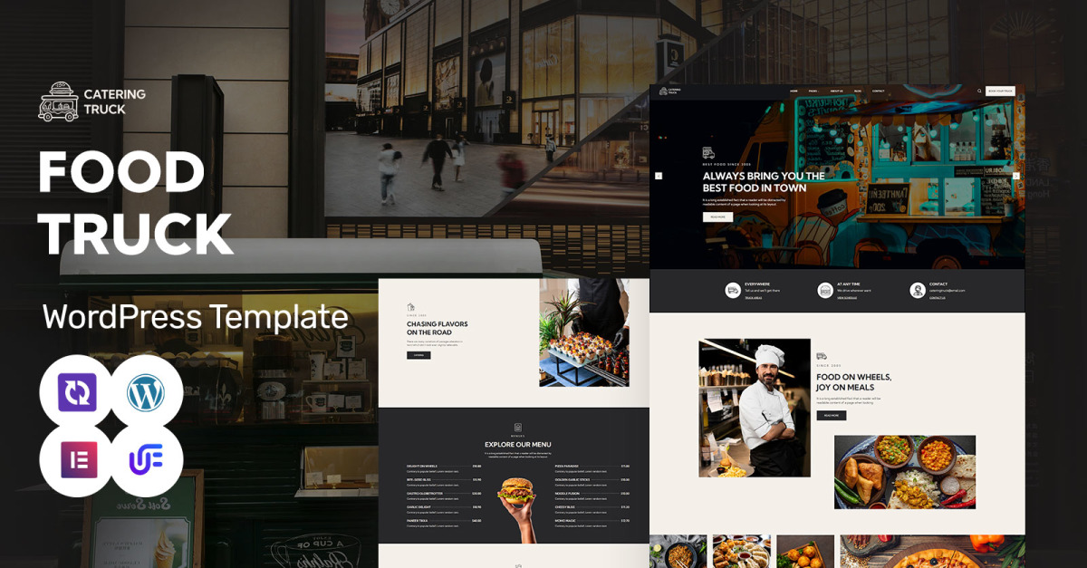 Этот шаблон WordPress для Catering Truck — это яркая, легко настраиваемая и удобная тема, разработанная для того, чтобы помочь владельцам фургонов с едой, уличным торговцам и небольшим мобильным ресторанам создать привлекательный и полностью функциональный веб-сайт. Благодаря современному и адаптивному дизайну этот шаблон гарантирует, что ваш веб-сайт будет выглядеть потрясающе на любом устройстве, от настольных компьютеров до смартфонов и планшетов.